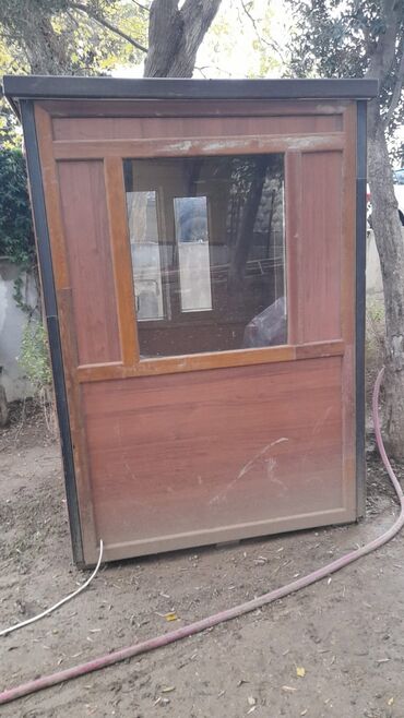 Küçük ticarət köşkü / boks - Metaldan yığma köşk, ön və yan hissələrdə dəmir barmaqlı pəncərələr - Ön tərəfdə iki qanadlı metal qapı - Üstü dalğalı sinklənmiş “şifer” tipli dam örtüyü, ön hissədə ...