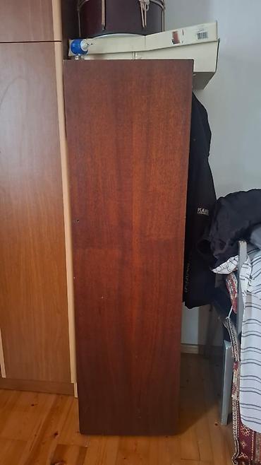 İki qapılı komod/kitab dolabı - Material: laminat örtüklü taxta panel, möhkəm korpus - Rəng: tünd qəhvəyi-gavalı tonları, neytral tünd çərçivə ilə - Dizayn: yuxarıda açıq rəf (kitab, dekor və günd...