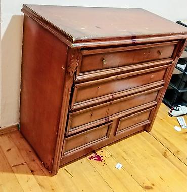 Mebel növü: Şkaf-komod Təsvir: - Klassik üslubda, qəhvəyi ağac teksturası ilə komod - 5 geniş çekmece: hər biri ikili metal tutacaqla - Səth hissəsi dekor və ya gündəlik istifadə üçün əlverişli - ...