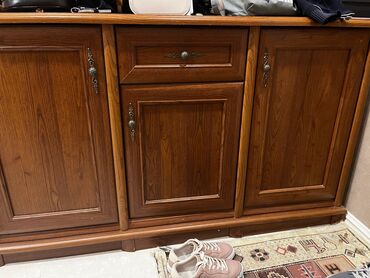 Klassik tərzli taxta komod/şkaf 20 AZN - Material: ağac fakturalı, dərin qəhvəyi (ceviz tonları) örtük - Ön panel: dekorativ frezələnmiş çərçivələr, klassik bürünc rəngli metal tutacaqlar və mötəri...