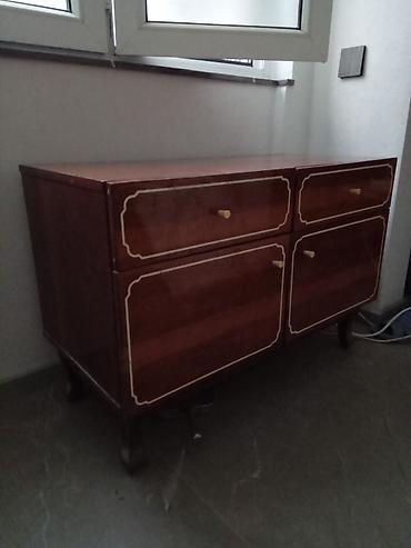 Taxta komod-tumboçka. - Klassik üslubda, qəhvəyi taxta fakturalı