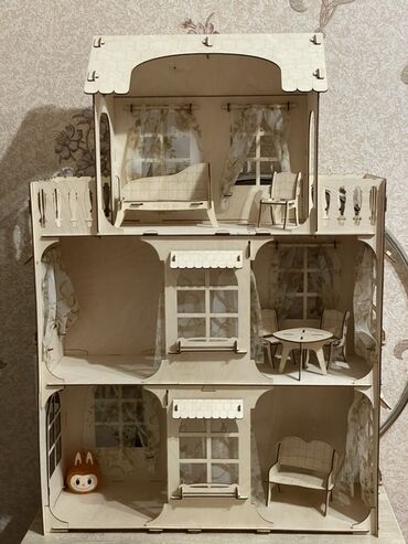 Taxta kukla evi – çoxmərtəbəli, geniş və detallı interyerlə