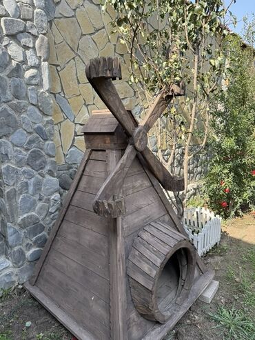 Açıq havada istifadə üçün dekorativ taxta it evi – külək dəyirmanı dizaynı