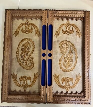 Əl işı nərd taxtası – ağac oyma çərçivəli, şüşə vitrinli dizayn