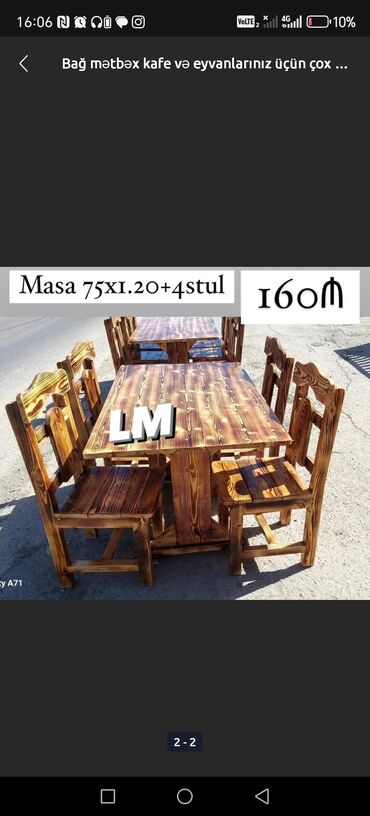 Çatdırılma yoxdurTaxtadan hazırlanmış, dörd və ya daha çox stulla birlikdə masa dəsti. Bu dəst bağ, mətbəx, kafe və ya eyvan üçün əla seçim ola bilər. Masa və stullar təbii görünüşlüdür və istənilən məkana rahatlıq qatır.