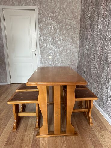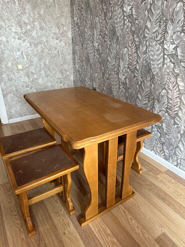 - Komplekt: 1 ədəd düzbucaqlı masa + 4 ədəd taburet