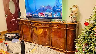 - TV üçün uzun komod/büfe: geniş üst səth (böyük TV üçün uyğundur), çox bölməli şkaf və çekmeçələr.