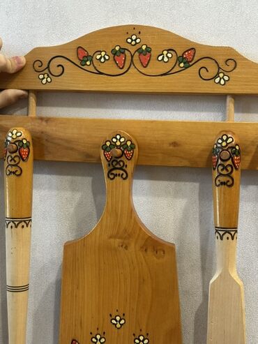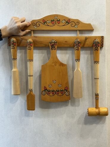 Taxta mətbəx dəsti – divara asılan askı və 5 ədəd alət