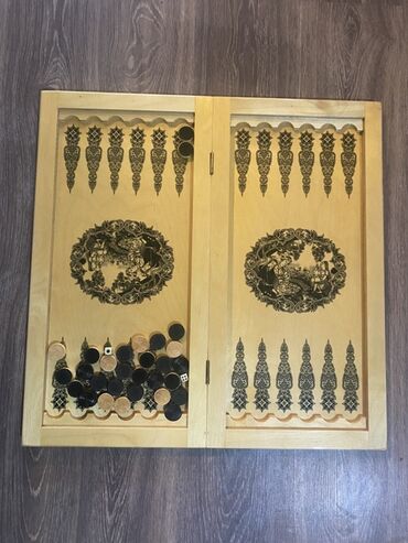 Taxta nərd–şahmat dəsti - Material: təbii ağacdan qatlanan kassalı
