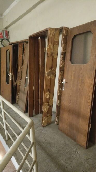 - Dəst: bir neçə ədəd qapı vərəqi, uyğun taxta qutu/çərçivələr və menteşələr görünür. Qollar və kilid üçün yerlər hazırdır, bəzilərində qol dəsti üstündədir.