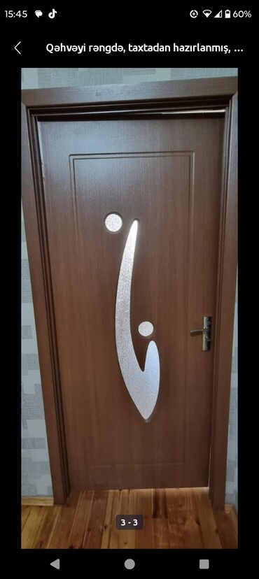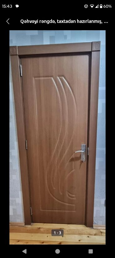Qəhvəyi rəngdə, taxtadan hazırlanmış otaq qapıları dəsti