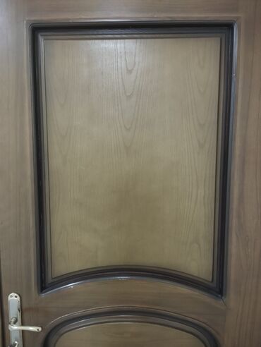 Taxta interyer qapısı – (3 əd, istifadə olunmuş) klassik dizayn. Ölçülər - hər bir ədəd - 194x172 sm - Material: taxta əsaslı, qəhvəyi (palıd tonlarında) dekor örtüklü. - Dizayn: ön səthdə deko...
