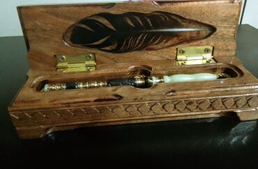 - İstifadə: Yazı masası üçün aksesuar, hədiyyəlik qutu kimi; qələm qutuda səliqəli saxlanılır