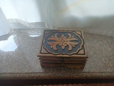 - Material: təbii ağac, üstü əl işilə oyma dekorativ naxışlı qapaq