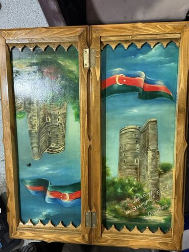 - İç hissə: əl işi rəsm – Qız qalası və Azərbaycan bayrağı təsvirləri. Rənglər sabit lakla qorunub.