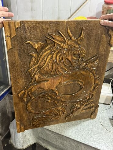 - Korpus: bütöv ağacdan hazırlanmış, əl oyması. Qapaqda yüksək relyefli əjdaha kompozisiyası.