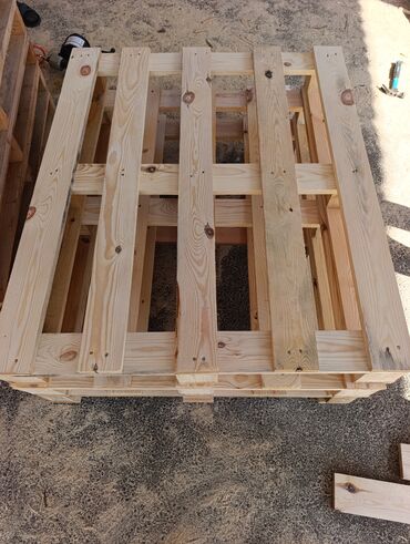 Taxta paletlər - Material: möhkəm taxta, çoxsəviyyəli konstruksiya - Tip: standart yükləmə/saxlama paletləri - Uyğunluq: anbar, logistika, daşınma, tikinti materiallarının yığılması, darvaza/istix...