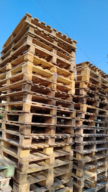 Taxta paletlər - Material: möhkəm taxta, çoxsəviyyəli konstruksiya - Tip: standart yükləmə/saxlama paletləri - Uyğunluq: anbar, logistika, daşınma, tikinti materiallarının yığılması, darvaza/istix...