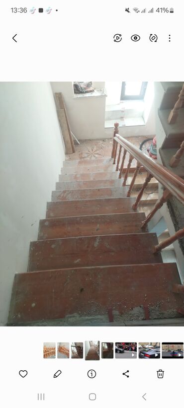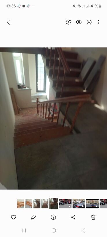 - Quraşdırma: mövcud beton karkas üzərinə bərkidilmiş taxta pillələr; məhəccər və şpindellər yan kənarlar boyunca montaj edilib.