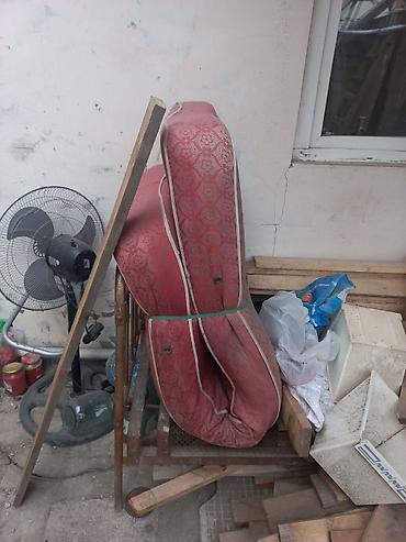- Oturacaq yastıqları: Qırmızı-bordo rəngli, naxışlı parçadan iki ədəd iri yastıq (oturacaq və arxa hissə üçün). Kənarları açıq rəng kantla işlənib, mərkəzdə düymə bərkidiciləri var. Skamya/kreslo üçün yumşaq oturacaq kimi istifadə oluna bilər.