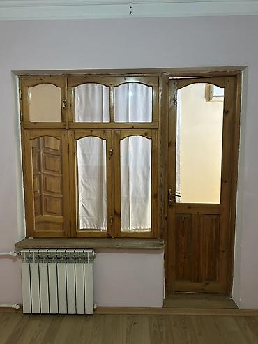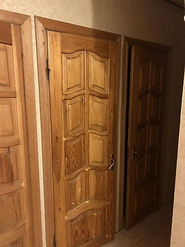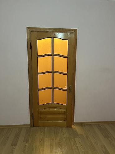 - 2 ədəd içotaq qapısı: üst hissəsi 6 bölməli dekorativ şüşəli, dalğalı travers dizaynı, ağac pervazları, mexaniki tutacaq və menteşələr