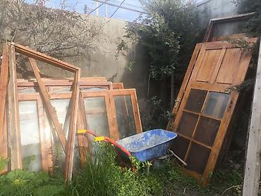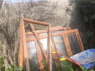 - Komplekt: bir neçə ədəd taxta pəncərə çərçivəsi (şüşələri üstündə), taxta giriş/otaq qapısı (üst hissəsi panel, aşağısı 6 şüşə bölməli); bəzi pəncərələr üçün ayrıca taxta ştapik/çərçivə zolaqları da var