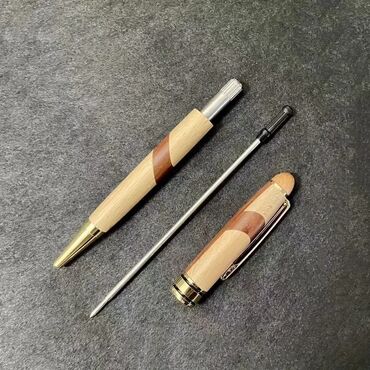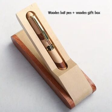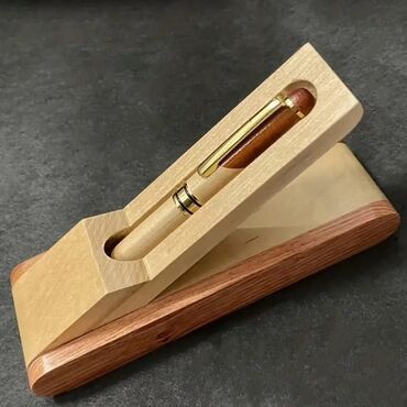 Taxta qələm dəsti və stend - Material: təbii ağacdan hazırlanmış bəzəkli qələm və uyğun taxta stend. Açıq rəngli ağac gövdə üzərində tünd ağac insertləri, qızılı detallarla. - Qələm növü: yazı ucu...