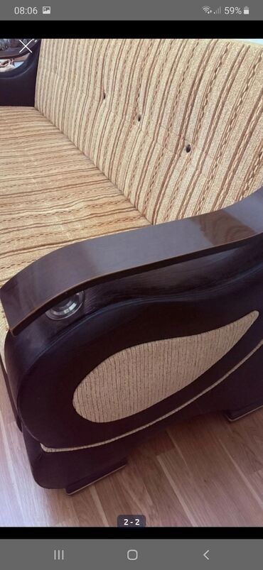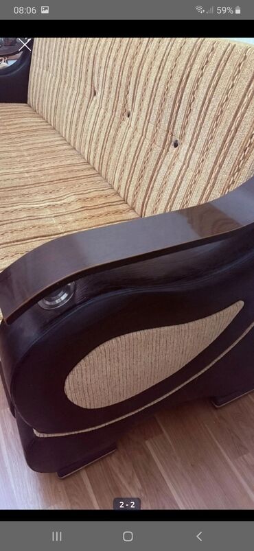 - Oturacaq və arxa hissə eyni parçadan: bej-qəhvəyi rəng palitrası, şaquli zolaqlı və teksturalı naxış