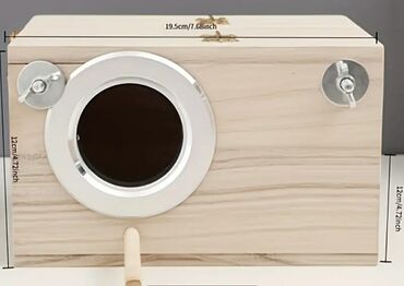 Quş qəfəsi üçün taxta yuva satılır. Uzunluğu 17sm, eni 17sm
