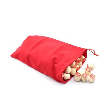 Taxta qutuda loto. Taxta daşlar, kartlar, düymə və torba Çatdırılma