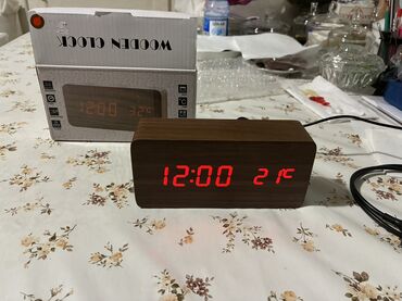 Kompakt ölçülü, minimalistik görünüşlü, taxta üslubda dekorativ rəqəmsal saat. Qutusu ilə birlikdə.