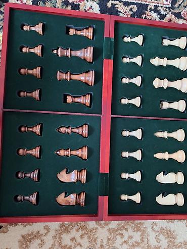 - Komplekt: qatlanan taxta şahmat lövhəsi + 32 ədəd taxta fiqur + daxili qoruyucu yuvalar.