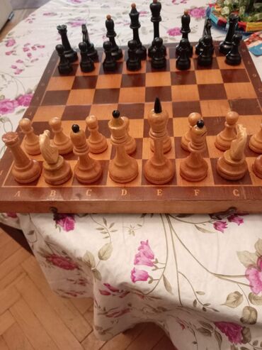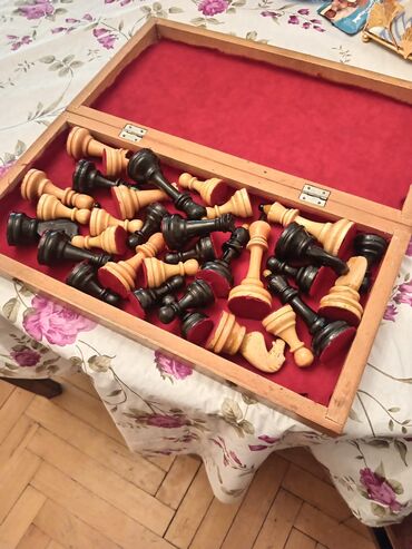 Taxta şahmat dəsti - Material: ağacdan hazırlanmış şahmat taxtası, kənarları naxışlı çərçivə ilə - Lövhə: açıq və tünd kvadratlı klassik 8x8 sahə, kənarlarda A–H və 1–8 işarələmə - Fiqurlar: iki r...
