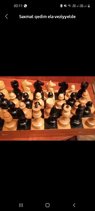 Əl işləri ilə hazırlanmış ağac şahmat dəsti - Material: tam ağac korpus, laklanmış səth. Taxta üzərində oyma naxışlar və dekorativ haşiyələr. - Taxta lövhə: iki rəngli kvadratlar, kənarlarda a–h v...