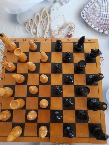 Əl işləri ilə hazırlanmış ağac şahmat dəsti - Material: tam ağac
