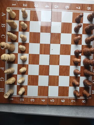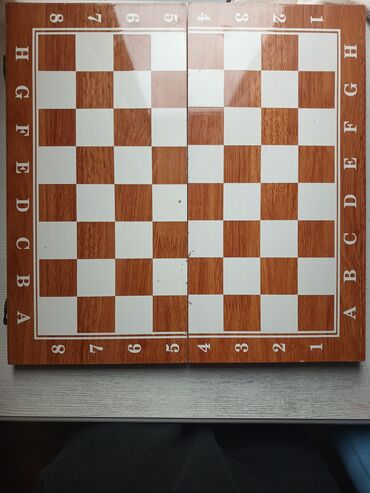 - İkiqat funksiyalı taxta qutu: xarici tərəfi şaxmat lövhəsi (A–H və 1–8 işarələmələri ilə), iç tərəfi nard (backgammon) meydançası.