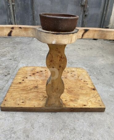 - Ortada dekorativ oyma dayaqlı konstruksiya, yuxarı hissədə isə dairəvi oyuq – içində metal/keramika kasası olan yuva.