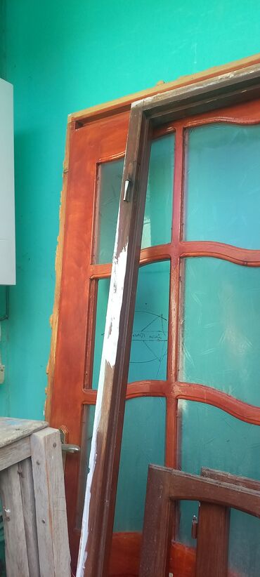 Taxta şüşəli qapı - Material: təbii ağac karkas, lak örtüklü -