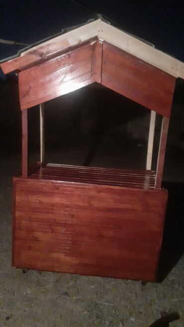 Taxtadan hazırlanmış ticarət köşkü. Bu köşk hər cür ticarət fəaliyyəti üçün uyğundur. Dam hissəsi su keçirməyən materialdan hazırlanmışdır. Dörd dayaq üzərində dayanan quruluşu sayəsində sabitdir. Köşkün alt hissəsi dolab kimi istifadə oluna bilər tekerlidir. Mobil satış nöqtəsi kimi rahatlıqla yerini dəyişmək mümkündür. qiymet razilasma yolu ile