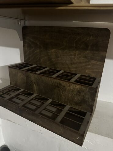 - Məhsul: Ətir şüşələri üçün mərtəbəli taxta vitrin-stand.