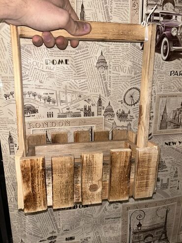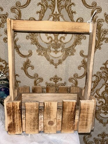 Taxta əl tutacaqlı dekorativ səbət/qutu