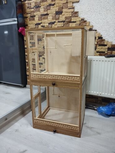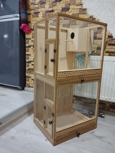 Qəfəs böyük .üz 1.80sm eni 50sm hun.30sm. balaca üz 80sm eni 50 sm hun 40sm.qiymət birinə aiddir..