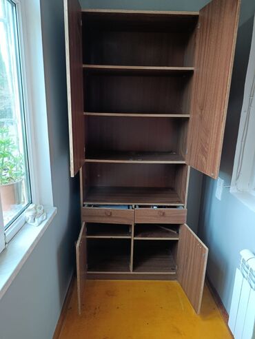- Üst hissə: ikitaylı qapı və 3 mərtəbəli rəf bölməsi – kitab, qab-qacaq və ya dekor üçün geniş yer.