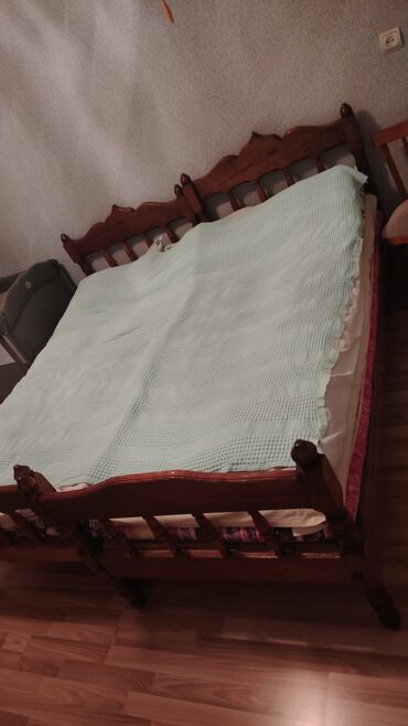 Taxta yataq otağı mebeli dəsti Kiraye ev verilir - Klassik üslubda massiv ağacdan hazırlanmış yataq dəsti - Komplekt: iki nəfərlik çarpayı (taxta başlıq və ayaqlıq, oyma dekor), iri üçqapılı şkaf (...