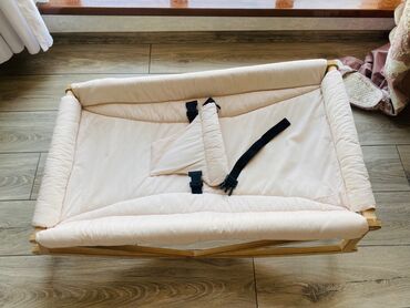 - Yataq hissəsi: qalın, yumşaq bordürlü parça üzlük, körpəni hər tərəfdən qoruyan yüksəldilmiş kənarlar