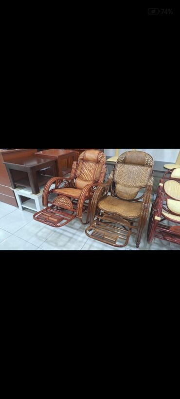 Təbii rattan üslubunda yelləncəklı kreslo - Material: toxunma rattan/qağayıcıl bambuk görünüşlü möhkəm karkas, laklı səth - Dizayn: yüksək bel dəstəyi, başlıq və bel zonası üçün anatomik panellər;...