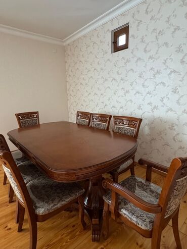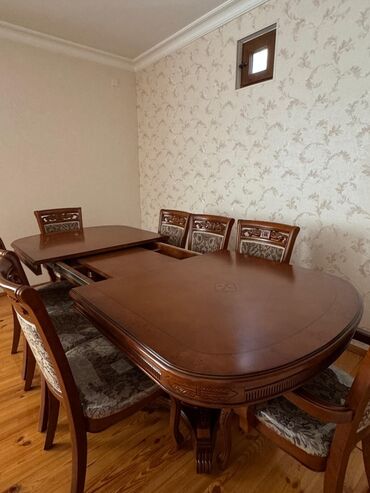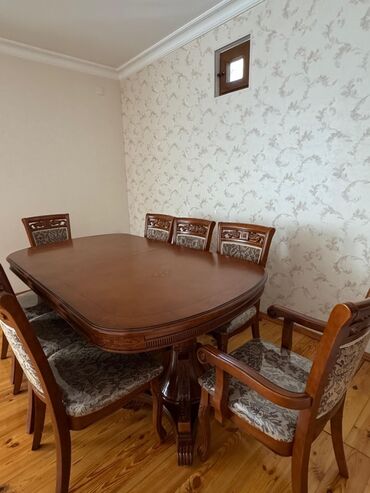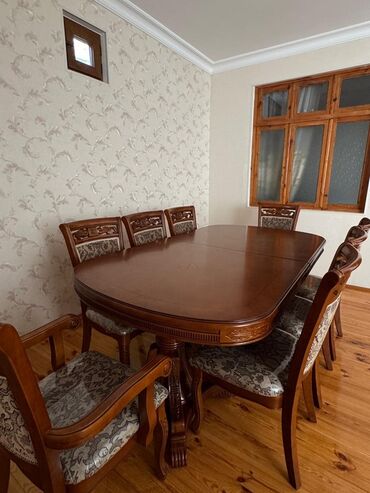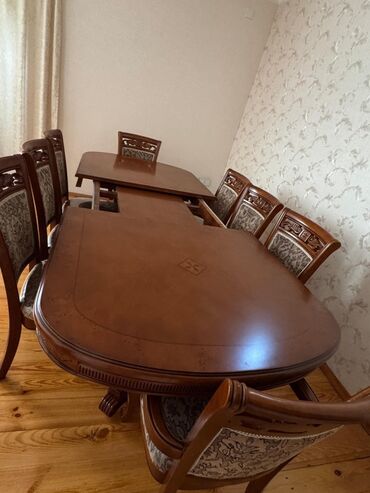 - Dəst: 1 böyük yemək masası + 8 oturacaq