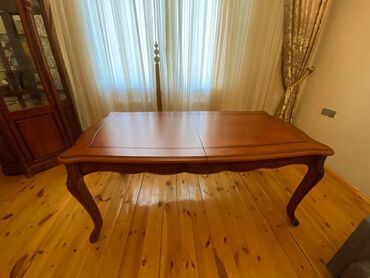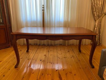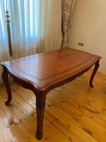 Klassik üslubda yemək/otaq masası - Material: tam ağac konstruksiya, üst hissə parlaq laklı təbii ağac naxışlı səth - Forma: düzbucaqlı, yumru künclər - Ayaqlar: oyma, yüngül əyri formalarla sabit...