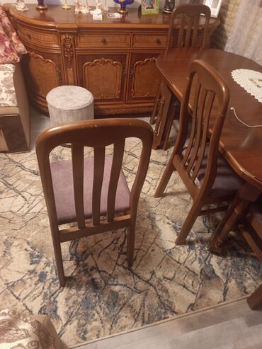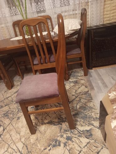 Qara metal çərçivəli, bənövşəyi rəngli oturacağı və kürəyi olan yeni stul. Stul, oturacağı və kürəyi üzərində naxışlı parçası ilə zərif görünüşə malikdir. Qonaq otağı, mətbəx və ya ofis kimi müxtəl...