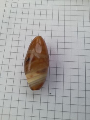 - Material: təbii aqat/karneol tipli daş (şəffaf-qəhvəyi, zolaqlı faktura), əlavə olaraq bir ədəd sarı rəngli sferik daş muncuq